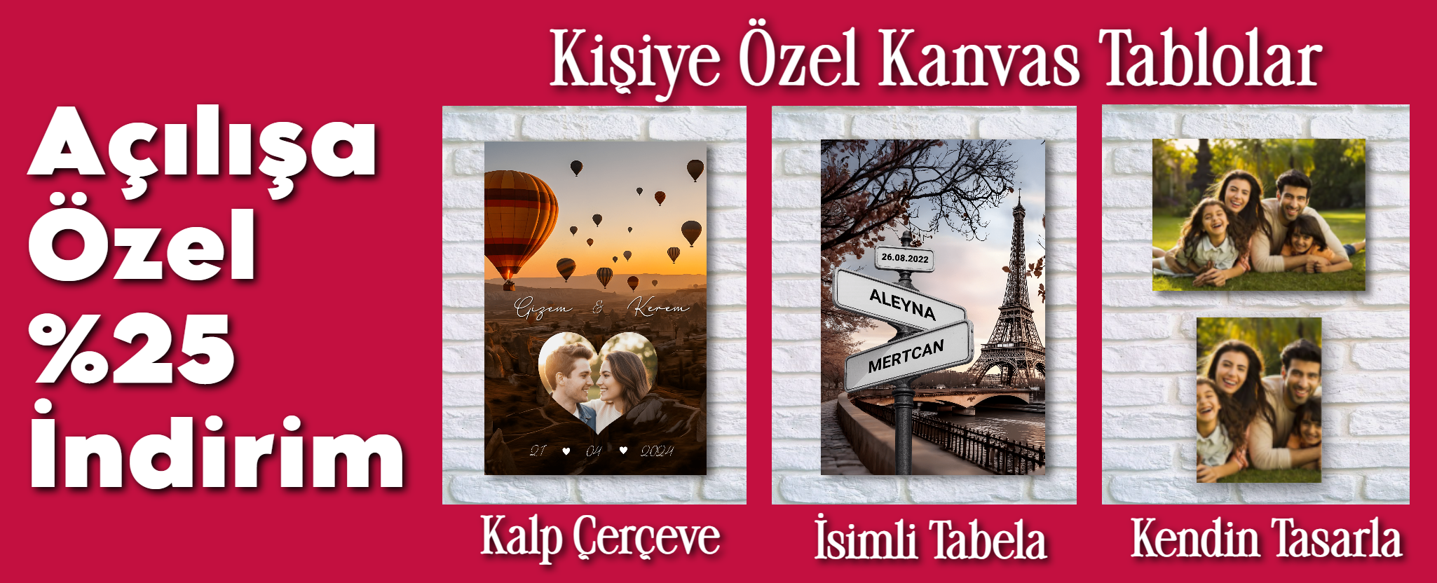 Kişiye Özel Kalp Çerçeveli Kanvas Tablo - Kapadokya Tema