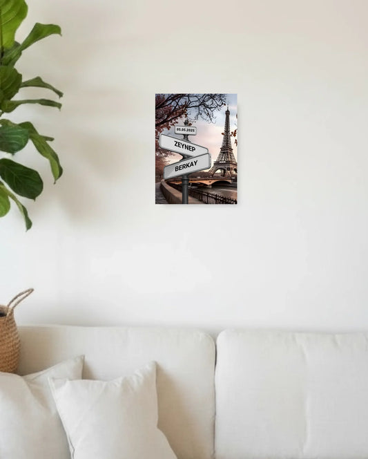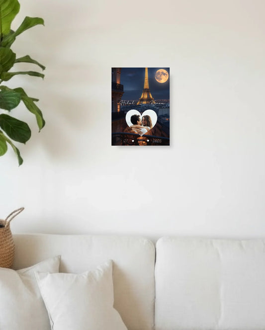 Kişiye Özel Kalp Çerçeveli Kanvas Tablo - Eyfel Tema
